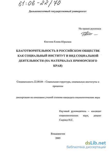 Глава II. Институализация благотворительной деятельности в российском обществе и в Приморском крае 76