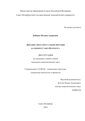 Социологическое исследование процессов интеллектуальной миграции СанктПетербурга