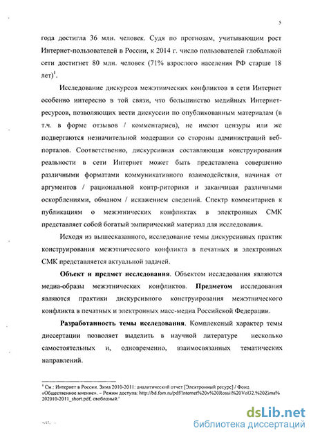 Цель и задачи исследования. Целью диссертационной работы является выявление дискурсивных практик социального конструирования межэтнического конфликта в печатных и электронных масс-медиа. Для достижения данной цели необходимо решение следующих задач: