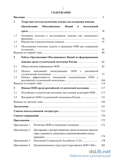 2 Работа Организации Объединенных Наций по формированию имиджа среди студенческой молодежи России 62