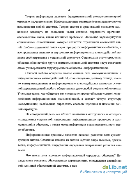Важными методологическими ориентирами для настоящей диссертационной работы послужили концептуальные труды отечественных авторов В.Н. Ан-тошкина, М.Ю. Казаринова, В.В. Козловского, Л.А. Кочубеевой, В.В. Миронова, А.А. Овчарова, В.Д. Попова, В.И. Степанского, М.Л. Стояловой, Е.П. Тавокина, В.В. Тузова, в которых представлены различные проявления закономерностей информационных процессов в обществе, а также информационных и коммуникативных структур социальных систем.