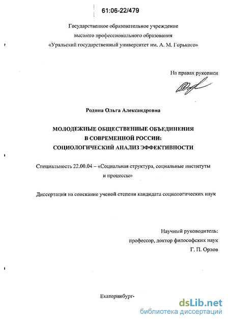 Предмет исследования: актуальные тенденции развития молодежных общественных объединений и эффективность их деятельности в современных российских условиях.