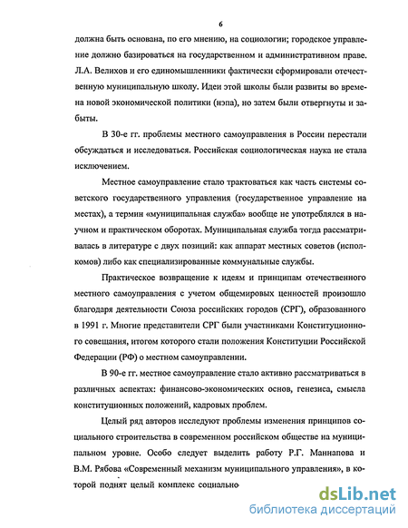 Целый ряд авторов исследуют проблемы изменения принципов социального строительства в совре*менном российском обществе на муниципальном уровне. Особо следует выделить работу Р.Г. Маннапова и В.М. Рябова «Современный механизм муниципального управления», в которой поднят целый комплекс социально-управленческих проблем мест-