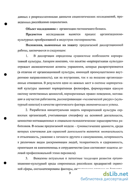 В диссертационной работе сделан акцент на исследовании процесса трансформации корпоративной культуры в сервисной сфере, на рассмотре-