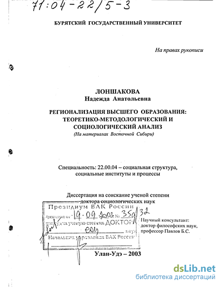 Актуальность темы исследования. Необходимость разработки теоретико-методологических основ регионализации высшего образования диктуется стратегическим курсом российского общества в период перехода к рыночным отношениям на усиление региональных начал. Отсюда потребность в целостном научном осмыслении современной общественной системы образования, выработки более адекватных подходов к формирующейся образовательной политике. Предпосылкой эффективного управления развитием системы высшего образования является адекватное понимание ее социальной природы, функций, внутренней структуры. Особое значение в современных условиях имеет социологический анализ проблем системы функционирования высшего образования в России, детерминируемых, прежде всего своеобразием хода социально-экономических реформ.