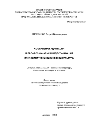 - Социологические концепции адаптации и идентификации преподавателей физической культуры