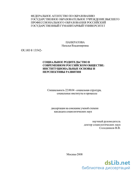 Актуальность исследования определяется тем, что констатируемый в настоящее время рост числа детей-сирот в России и анализ причин этого явления свидетельствует о невыполнении их родителями своей основной обязанности по воспитанию детей. Известно, что большинство детей, находящихся в государственных учреждениях социальные сироты, у них есть биологические родители, которые лишены родительских прав. Именно дети из социально дезадаптированных (бедных, с применением внутрисемейного насилия, безработных и т.д.) семей, а также выпускники детских домов и интернатов являются в настоящий, момент социальным ресурсом сообществ. деструктивных Это делает «нетолерантных» особенно движений и криминальных социального значимым изучение родительства в России, в том числе в условиях неоднозначного отношения общественности к практике усыновления российских детей иностранцами. Центральным понятием диссертационного исследования- является» социальное родительство, которое включает в. себя* два взаимосвязанных аспекта институциональные характеристики (специфические социальные роли, нормативные предписания культуры и т.д.) и способы его повседневной реализации. Для нашего анализа важно и то и другое, поэтому в дальнейшем говоряо социальном родительстве, мы будем-иметь в виду оба эти аспекта, при необходимости акцентируя внимание на одном из них. В последние годы в России растет число родителей,1 не связанных с воспитываемыми детьми биологическими узами, но реализующих по отношению к ним функцию родительства в полной мере. В этом случае социальное родительство» реализуется во. всем многообразии своих форм, таких как усыновление, опекунство, приемное родительство, патронатное воспитание, семёйно-воспитательные группы и социальное «квази»- родительство (воспитание в государственных учреждениях). Отличительной особенностью нашей страны является широкое распространение социального «квази»-родительства, чему способствовало сознательное протяжении идеологически-обоснованное всего XX века. В развитие время этой уже формы на настоящее данные, накоплены об многочисленные исследовательские свидетельствующие отклонениях в развитии воспитанников современных детских домов в России. Традиционные формы социального родительства, практиковавшиеся в нашей стране на протяжении значительного периода истории (церковные приюты, приюты, которые содержали частные лица, попечительские советы или различные благотворительные общества, патронат и др.) были большей частью разрушены. А провозглашение государством приоритета семейных форм социального родительства, по сути, является признанием меньшей эффективности государственного воспитания. Несмотря на это, семьи, принимающие на воспитание детей-сирот, испытывают влияние неоднозначного общественного мнения, как в отношении детей, в силу различных обстоятельств лишившихся попечения родителей, так и в отношении социальных недостаточно родителей. Кроме того,, сформированными представляются институциональные основания этого процесса (нормативное регулирование, развитие службы опеки и попечительства, подготовка квалифицированных кадров для нее,подготовка будущих социальных родителей, изучение эффективности различных форм социального родительства и т.д.). В этих условиях форсированны