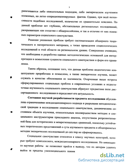 Таким образом, осознание того, что данная проблема недостаточно концептуально проработана и осмыслена, а также эмпирически изучена, может служить в качестве обоснования ее значимости. Очерченная выше острота сформулированных социальных проблем в современных условиях и недостаточная изученность социального самочувствия образуют предметное поле диссертационного исследования и определяют его актуальность.