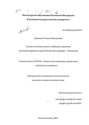 Арямова Татьяна Викторовна. Социологический анализ свободного времени населения среднего города : На примере г. Таганрога : диссертация ... кандидата социологических наук : 22.00.04.- Ростов-на-Дону, 2001.- 208 с.: ил. РГБ ОД, 61 02-22/115-2