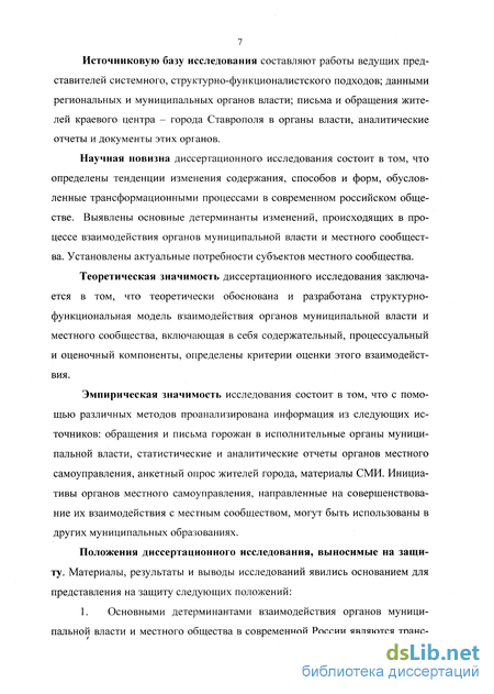 Научная новизна диссертационного исследования состоит в том, что определены тенденции изменения содержания, способов и форм, обусловленные трансформационными процессами в современном российском обществе. Выявлены основные детерминанты изменений, происходящих в процессе взаимодействия органов муниципальной власти и местного сообщества. Установлены актуальные потребности субъектов местного сообщества.