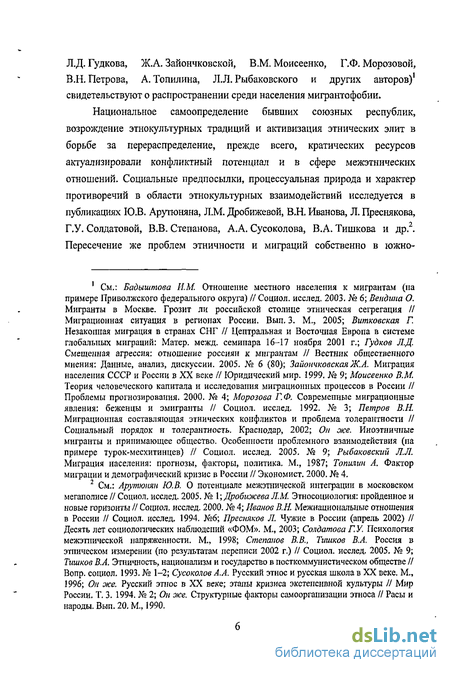 Л.Д. Гудкова, Ж.А. Зайончковской, В.М. Моисеенко, Г.Ф. Морозовой, В.Н. Петрова, А. Топилина, Л.Л. Рыбаковского и других авторов)1 свидетельствуют о распространении среди населения мигранте фобии.
