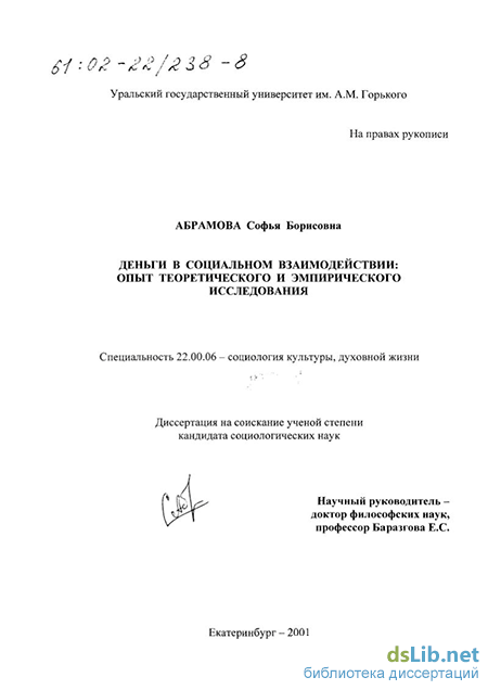 В-четвертых, сами эти исследования требуют решения проблем методологического и методического характера, разработки социологической теории денег. Диссертационная работа предполагает использование как теоретических, исторических, методологических сторон изучения денег, так и социокультурного аспекта.