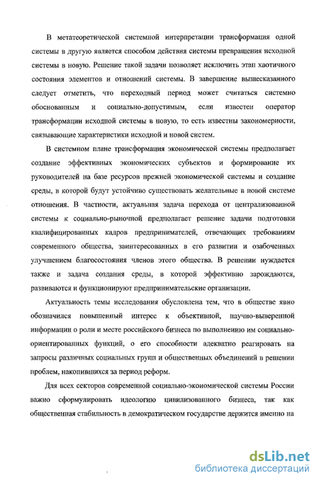 В системном плане трансформация экономической системы предполагает создание эффективных экономических субъектов и формирование их руководителей на базе ресурсов прежней экономической системы и создание среды, в которой будут устойчиво существовать желательные в новой системе отношения. В частности, актуальная задача перехода от централизованной системы к социально-рыночной предполагает решение задачи подготовки квалифицированных кадров предпринимателей, отвечающих требованиям современного общества, заинтересованных в его развитии и озабоченных улучшением благосостояния членов этого общества. В решении нуждается также и задача создания среды, в которой эффективно зарождаются, развиваются и функционируют предпринимательские организации.