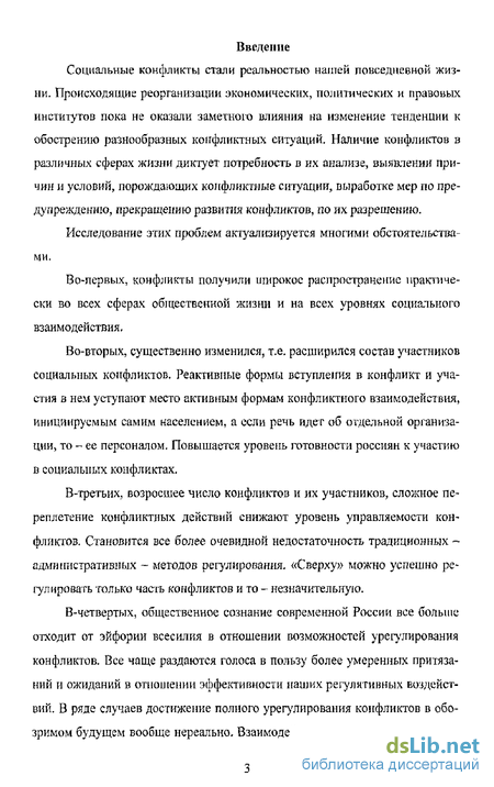 Социальные конфликты стали реальностью нашей повседневной жизни. Происходящие реорганизации экономических, политических н правовых институтов пока не оказали заметного влияния на изменение тенденции к обострению разнообразных конфликтных ситуаций. Наличие конфликтов в различных сферах жизни диктует потребность в их анализе, выявлении причин и условий, порождающих конфликтные ситуации, выработке мер по предупреждению, прекращению развития конфликтов, по их разрешению.