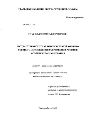 - Исследование проблем государственного управления системой высшего военного образования в современной России