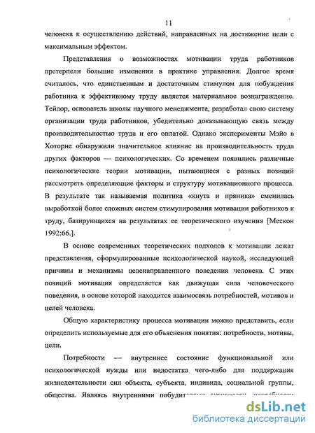 Мотивационный процесс рассматривается в диссертации как комплекс системных и непрерывных действий организации по выработке основных решающих элементов побуждения и стимулирования персонала, направленный на повышение эффективности деятельности организации.