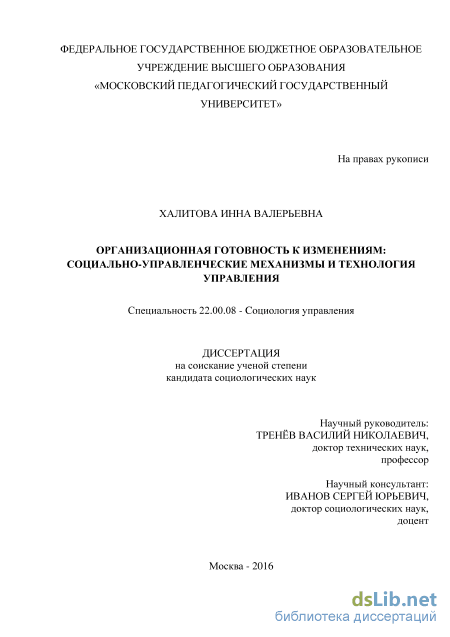 Соответствие паспорту специальности. Диссертационная работа выполнена в рамках специальности 22.00.08 – «Социология управления», содержит исследование организационной готовности к изменениям как одного из состояний социальной организации. Тема диссертации соответствует следующим пунктам Паспорта специальностей научных работников ВАК Министерства образования и науки РФ (социологические науки): п.12. «Социальные технологии в системе управления: сущность, формы и особенности»; п.13. «Социология организаций как реализация функций