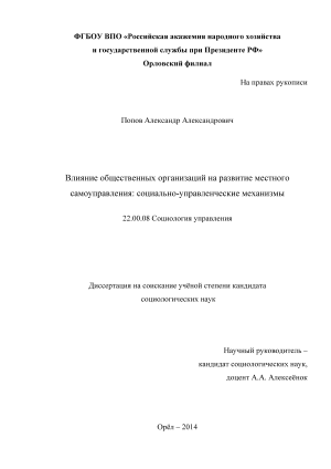 - Социально-управленческие механизмы влияния общественных организаций на развитие местного самоуправления