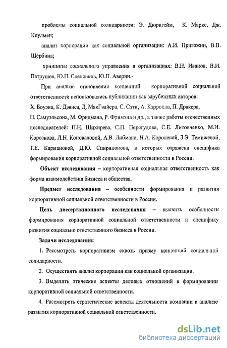 Цель диссертационного исследования - выявить особенности формирования корпоративной социальной ответственности и специфику развития социально ответственного бизнеса в России.