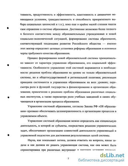 В диссертационном исследовании ставится задача рассмотрения современной специфики управления как фактора развития образовательной системы. Под управлением понимается целенаправленная деятельность субъектов управления различного уровня, обеспечивающая оптимальное функционирование и развитие управляемой системы, перевод ее на новый, качественно более высокий уровень по фактическому достижению целей с помощью необходимых оптимальных педагогических условий, способов, средств и воздействий.