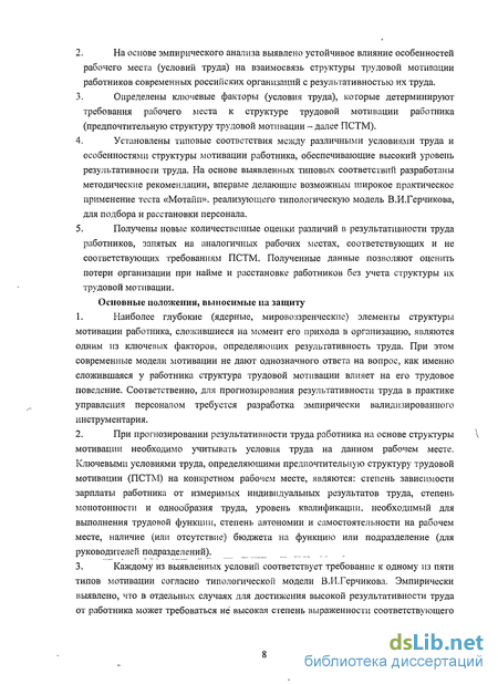 Теорегико-методологическую основу диссертационного исследования составляют фундаментальные концепции, представленные в трудах отечественных и зарубежных ученых по социологии труда, социологии управления, экономической социологии, экономической теории, социальной психологии, психологии управления и психологии личности, раскрывающие общие закономерности устройства структуры мотивации человека и особенности ее влияния на трудовое поведения работника в 1 Под рабочим местом здесь и далее в настоящей работе понимается не физическое рабочее место (стол, стул, компьютер и т.д.), а совокупность функциональных обязанностей, ответственности, полномочий и условий труда, в которые помещен работник. Развернутый перечень базовых характеристик рабочего места будет приведен далее, см. стр. 14. ' организации. Исследование проведено на стыке содержательных и процессуальных моделей мотивации.