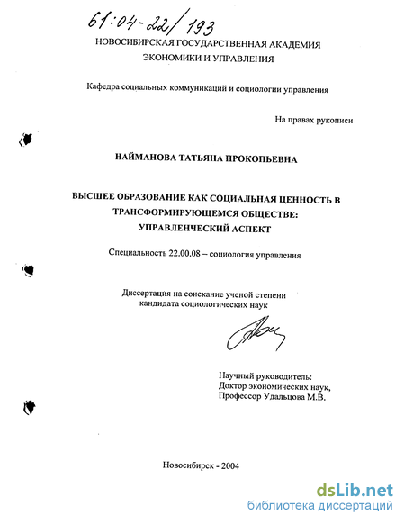В то же время, несмотря на имеющийся интерес ученых и практиков к исследованию высшего образования, наличие различных аспектов изучения системы высшего образования, проблема высшего образования как социальной ценности еще не заняла подобающего места.