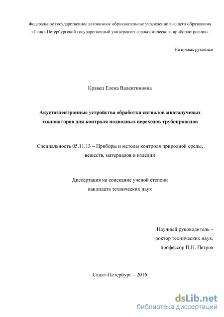 1 Обработка сигналов многолучевых приборов эхолокационного контроля подводных переходов трубопроводов акустоэлектронными устройствами с переизлучающими решетками 14
