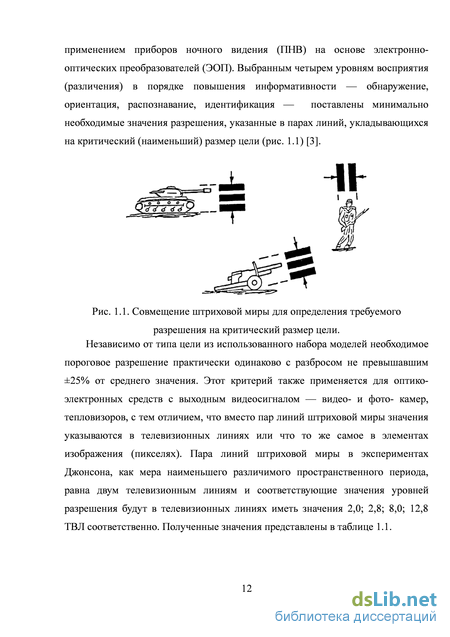 Как главный фактор распознавания/идентификации объекта была указана возможность различения критических особенностей формы профиля изображения цели. Чем больше деталей удается различить на изображении, тем больше вероятность идентификации объекта. Годом ранее Rosell и Willson [12, 13] в исследовании по восприятию фотографических изображений транспортных средств установили, что для распознавания объекта необходимо различение характерных деталей, присущих данному классу целей. Также ими было установлено, что требуемая величина детализации составляет 1/8 от минимальной ширины изображения, а для идентификации требуется детализация объекта 1/13 минимальной ширины. Эти цифры практически совпадают с критерием Джонсона, требующим 8 ТВ-линий для распознавания и 12,8 для идентификации.
