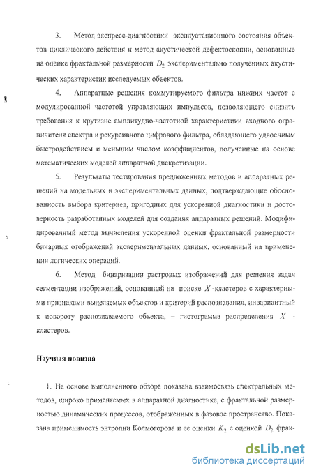 Основные задачи диссертационной работы: анализ методов обработки экспериментальных данных, характеризующих динамику поведения сложных технических и природных объектов и выявление критериев, пригодных для ускоренной аппаратной диагностики;