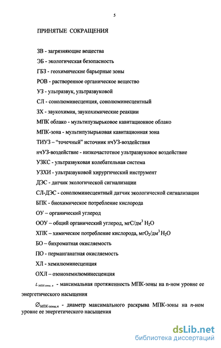ОСНОВНОЕ СОДЕРЖАНИЕ РАБОТЫ В первой главе, посвященной обзору литературы, рассмотрены основные проблемы экологической безопасности водной среды, стандартизованные и перспективные методы контроля качества водной среды. Рассмотрены физико-химические процессы в кавитационной зоне акустического поля, которые могут лечь с основу нового безреагентного сонолюминесцентного метода экспресс-контроля состояния водной среды. В соответствии с концепцией автоматических датчиков экологической сигнализации (ДЭС) и требований к ним, разработанным в НИЦЭБ РАН [9], сформулированы условия выбора реализующей их аппаратуры.