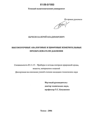 Целью работы является исследование и разработка аналоговых и цифровых высокоточных измерительных преобразователей давления (ИПД).