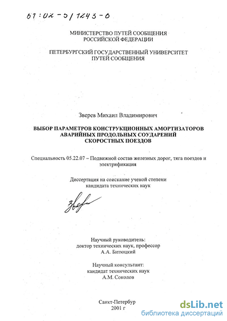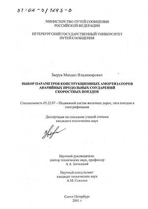 - Разработка методики исследования динамики продольного аварийного соударения и выбора параметров конструкционных амортизаторов