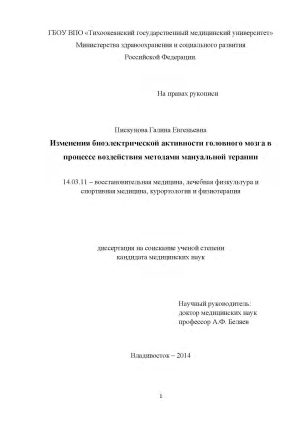 Поэтому вполне оправданным представляется привлечение современных нейрофизиологических методов оценки функциональных сдвигов, характеризующих признаки дисбаланса или степени нормализации важных морфофункциональных показателей центральной нервной системы, которые возникают в процессе мануальной диагностики и лечения [Шеповальников А.Н., Пейралад Ф., Цицерошин М.Н, Ходорковская Н.А.,2000]. Где степень разработанности темы??