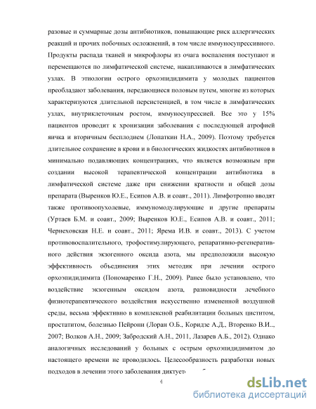 Ранее проведенные работы в нашем госпитале (Выренков Ю.Е., Есипов А.В., и соавт., 2011), показали возможность и эффективность чрескожного воздействия экзогенного оксида азота, а не только поверхностного воздействия на кожу и слизистые. В связи с очевидной трудностью оценки изменений тканей яичка и придатка, поверхностных и глубоких регионарных лимфоузлов при воздействии оксидом азота на фоне лимфотропной фармакотерапии у неоперированных больных с орхоэпидидимитом, нами была создана экспериментальная модель воспаления семенников у белых крыс. Для оценки эффективности проводимой терапии нами проводилось иммуногистохимическое исследование паховых лимфатических узлов, морфологическое исследование семенников после вывода животных из эксперимента. Изучалось межуточное пространство яичка и придатка - рыхлая волокнистая соединительная ткань, располагающаяся между канальцами семенников и протоком придатка, а также в паховых лимфатических узлах интенсивность свечения ОК МКА. По факту и времени купирования воспалительных клеточных изменений, развитию и стимуляции пролиферативных процессов межуточной ткани, наличию ОК, восстановлению микроциркуляции, оценивалась эффективность предлагаемой лечебной методики.