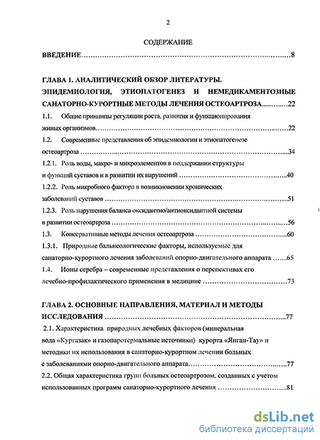 Одним из наиболее распространенных заболеваний является остеоартроз (ОА) - хроническое прогрессирующее дегенеративно-дистрофическое поражение суставов с болевым синдромом, дегенерацией суставного хряща, изменением субхондральной кости, развитием краевых остеофитов и реактивным синовитом (В.И. Мазуров, 2008; Г.П. Котельников, Ю.В. Ларцев, 2009; K.Morehead, R.E.Sack, 2003; J.Rogers et al., 2004). Тяжелые формы ОА требуют, зачастую, хирургической коррекции, что сопровождается серьезными психологическими проблемами, снижением социальной активности и качества жизни пациентов. Именно поэтому технологии восстановительной медицины, в том числе бальнеологические, особенно на ранних стадиях развития ОА, являются неотъемлемой составляющей комплексного лечения подобных больных (В.И. Мазуров, 2008; Б.Н. Рогозян, А.Ф. Бабякин, 2009). Учитывая сложность патогенеза ОА, современные подходы к его консервативному лечению направлены как на причины его возникновения, так и на стимуляцию механизмов компенсации возникающих нарушений. Показано, что стандартное санаторно - курортное лечение с использование природных лечебных факторов курорта «Янган-Тау» позволяет получать достаточно высокий терапевтический эффект у больных с ОА (Р.Г. Фархутдинов, 1975,1997; Р.Р. Бадретдинов, 2006), который, к сожалению, наблюдается не у всех групп пациентов.