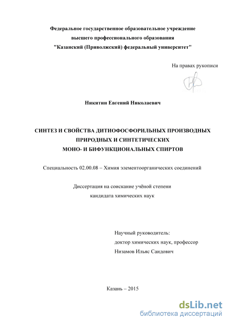 1.5 Дитиофосфорилирование трёх- и четырёхатомных спиртов 25
