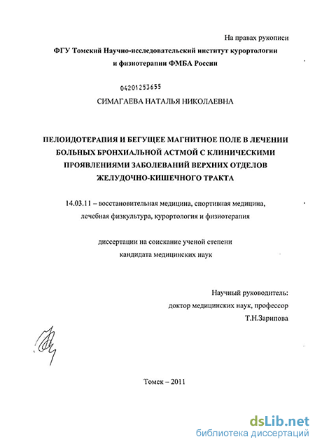 Известно, что магнитные поля и пелоиды имеют противовоспалительное, бронхолитическое, спазмолитическое, трофическое, метаболическое, иммуномодулирующее, гипосенсибилизирующее действие [Зарипова Т.Н., 1991, Лещинский А.Ф., 1985, Лобанов А.Ю., 2006, Мавродий В.М.,1997, Улащик В.С.,2006, Царфис П.Г.,1990, Хорошавина Н.Н.,2009, Sadlonova J.,2006], что может служить патогенетическим обоснованием их использования в лечении больных БА с сопутствующей патологией ЖКТ.