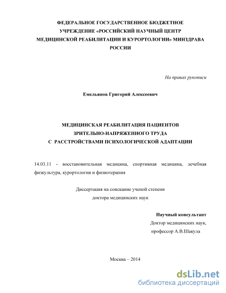 - Сравнительный анализ эффективности комплексного применения методов медицинской реабилитации пациентам зрительно-напряженного труда с расстройствами психологической адаптации