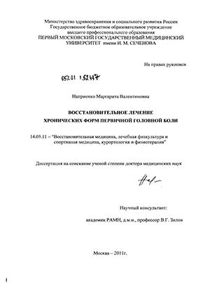 По материалам диссертационной работы опубликовано 44 печатные работы, в том числе 13 статей в журналах, рецензируемых ВАК, 2 методических пособия для врачей. Результаты работы были доложены на Всероссийской научно-практической конференции «Современные методологические подходы к восстановительной медицине и медицинской реабилитации лиц опасных профессий» (Москва 2005г.), региональной конференции «Болевой синдром в медицинской практике», (Тюмень 2007г.), Российской научно-практической конференции с международным участием «Головная боль-2007» (Москва 2007г.), научно-практической конференции неврологов г. Москвы «Тревожно-депрессивные расстройства в неврологической практике» (2007г.), Международном медицинском форуме «Индустрия здоровья» (Москва 2008г.), научно-практической конференции «Инновационные технологии в диагностике и лечении пациентов на амбулаторном этапе» ФГУ «Центральная поликлиника ФСБ России», (Москва 2008г.), III конгрессе с международным участием «Российский медицинский форум» посвященном 250-летию ММА им. И.М. Сеченова (Москва 2008г.), Межрегиональной научно-практической конференции «Головная боль – актуальная междисциплинарная проблема» (Смоленск, 2009).