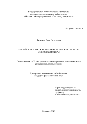 2.1.2. Сравнительно-сопоставительный анализ английской и русской терминологических систем банковской сферы 43