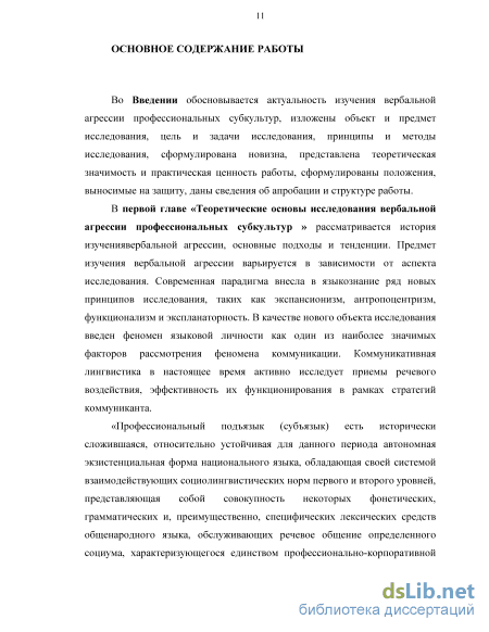 ГЛАВА 1 Теоретические основы исследования вербальной агрессии профессиональных субкультур