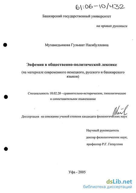 Цель исследования состоит в описании специфики эвфемии общественно-политического содержания в сравнительно-сопоставительном изучении на материале немецкого, русского и башкирского языков.