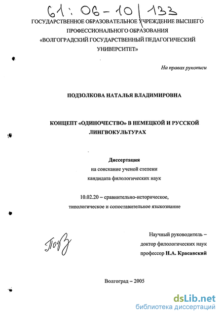 В основу проведенного исследования положена следующая гипотеза: 1. концепт «Einsamkeit»/«oflHH04ecTBO» представляет собой сложное ментальное образование, в котором могут быть выделены понятийные, образные и ценностные признаки, совпадающие и различающиеся в немецкой и русской лингвокультурах;