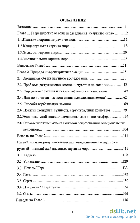 Цель данной работы состоит в выявлении, классификации, сопоставительном описании лексических средств объективации эмоциональных концептов «удивление», «радость», «стыд», «страх», «печаль/горе», «гнев», «презрение/отвращение» в русской и английской лингвистических культурах.