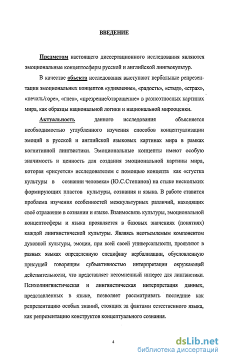 Предметом настоящего диссертационного исследования являются эмоциональные концептосферы русской и английской лингвокультур.
