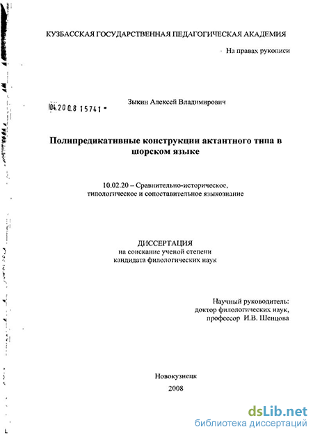 типологически ориентированное описание системы полипредикативных конструкций актантного типа в шорском языке в сопоставлении с другими тюркскими языками.