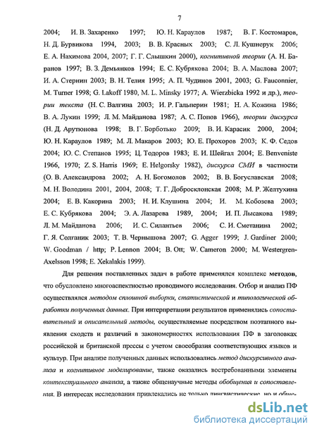 2004; И. В. Захаренко 1997; Ю. Н. Караулов 1987; В.Г.Костомаров, Н. Д. Бурвикова 1994, 2003; В. В. Красных 2003; С. Л. Кушнерук 2006; Е. А. Нахимова 2004, 2007; Г. Г. Слышкин 2000), когнитивной теории (А. Н. Баранов 1997; В. 3. Демьянков 1994; Е. С. Кубрякова 2004; В. А. Маслова 2007; И. А. Стернин 2003; В. Н. Телия 1995; А. П. Чудинов 2001, 2003; G. Fauconnier, М. Turner 1998; G. Lakoff 1980, М. L. Minsky 1977; A. Wierzbicka 1992 и др.), теории текста (Н. С. Валгина 2003; И.Р.Гальперин 1981; Н. А. Кожина 1986; В. А. Лукин 1999; Л. М. Майданова 1987; А. С. Попов 1966), теории дискурса (Н. Д. Арутюнова 1998; В. Г. Борботько 2009; В. И. Карасик 2000, 2004; Ю. Н. Караулов 1989; М. Л. Макаров 2003; Ю. Е. Прохоров 2003; К. Ф. Седов 2004; Ю. С. Степанов 1995; Ц. Тодоров 1983; Е. И. Шейгал 2004; Е. Benveniste 1966, 1970; Z. S. Harris 1969; Е. Helgorsky 1982), дискурса СМИ в частности (О. В. Александрова 2002; А. Н. Богомолов 2002; В. В. Богуславская 2008; М.Н.Володина 2001, 2004, 2008; Т. Г. Добросклонская 2008; М. Р. Желтухина 2004; Е. В. Какорина 2003; Н. И. Клушина 2004; И. М.Кобозева 2003; Е. С. Кубрякова 2004; Э. А. Лазарева 1989, 2004; И. П. Лысакова 1989; Л. М. Майданова 2006; И. С. Силантьев 2006; С. И. Сметанина 2002; Г. Я. Солганик 2003; Т. В. Чернышова 2007; G. Agger 1999; J. Gardiner 2000; W. Goodman / http; P. Lennon 2004; B. Ott; W. Cameron 2000; M. Westergren-Axelsson 1998; E. Xekalakis 1999).