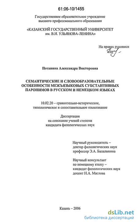 Целью работы является определение состава близкозвучных лексем русского и немецкого языков, относящихся к числу межъязыковых паронимов, морфемно-структурный анализ русско-немецких паронимов в синхронном аспекте в системе субстантивных образований русского и немецкого языков и выработка критериев для определения данной группы слов как межъязыковых паронимов.