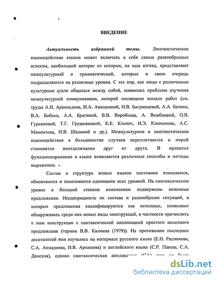 Состав и структура живых языков постоянно изменяются, обновляются и пополняются единицами всех уровней. На синтаксическом уровне в большой степени изменениям подвержены неполные предложения. Неоднородность их состава и разнообразие ситуаций, в которых предложения квалифицируются как неполные, позволяют обнаруживать среди них новые виды конструкций, в частности причислить к ним конструкции с синтаксической аппликацией простого неполного предложения (термин В.В. Казмина (1979)). На протяжении последних десятилетий бни изучались на материале русского языка (Е.Н. Рядчикова, С.А. Ахмадеева, И.В. Архипова) и английского языка (СР. Панеш, С.А. Донская), однако синтаксическая аппликация (СА) еще не была