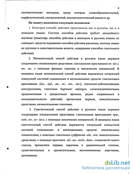 5 Предмет исследования - средства выражения начинательного и смягчительного способов действия современного немецкого языка в сопоставлении с соответствующими средствами русского языка.